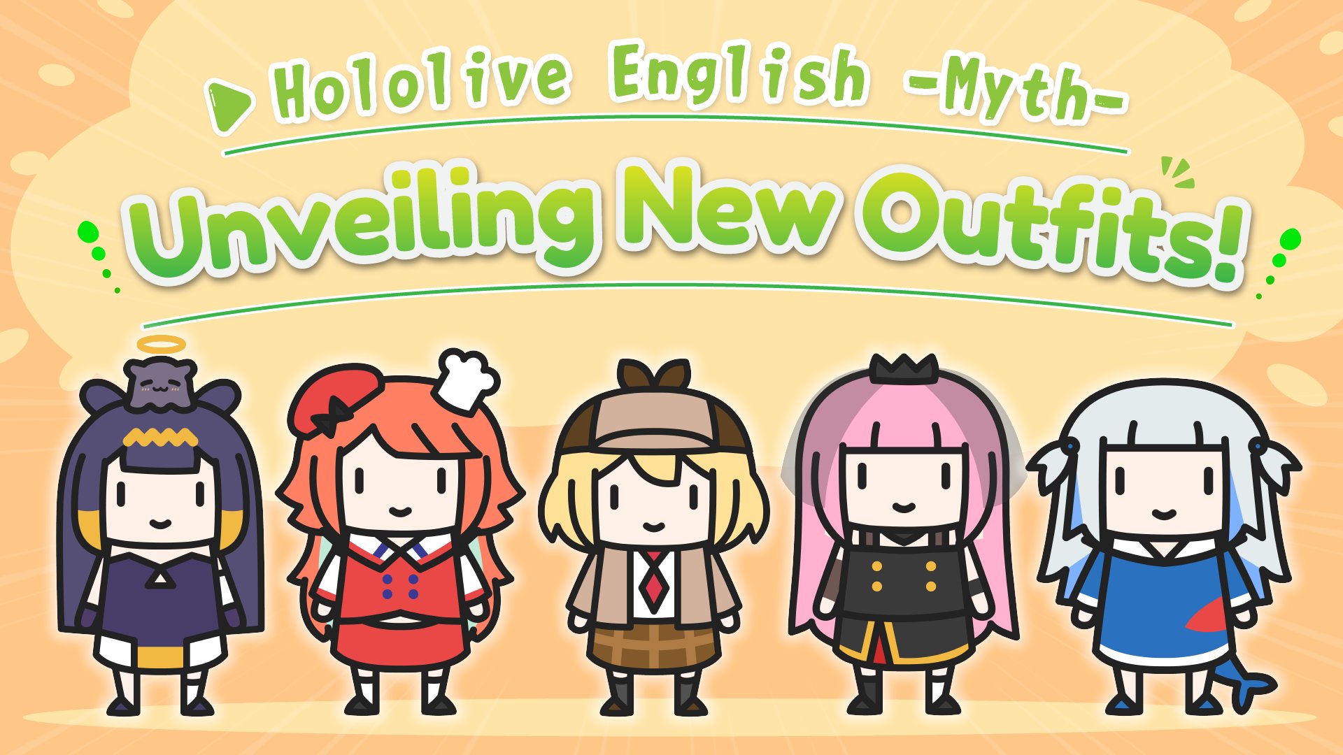 Cover Corp announced that the Hololive English Myth group will unveil new party outfits via live streams later this week.